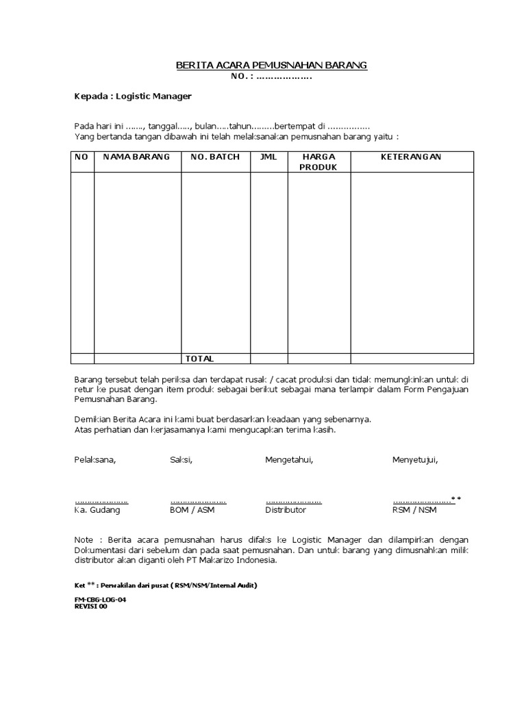 Berita Acara Pemusnahan Barang