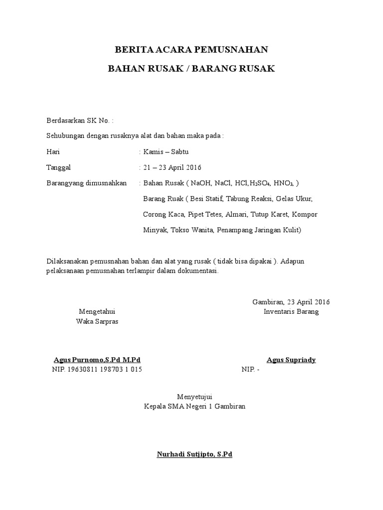 Contoh Surat Berita Acara Penghapusan Barang Download Kumpulan Gambar
